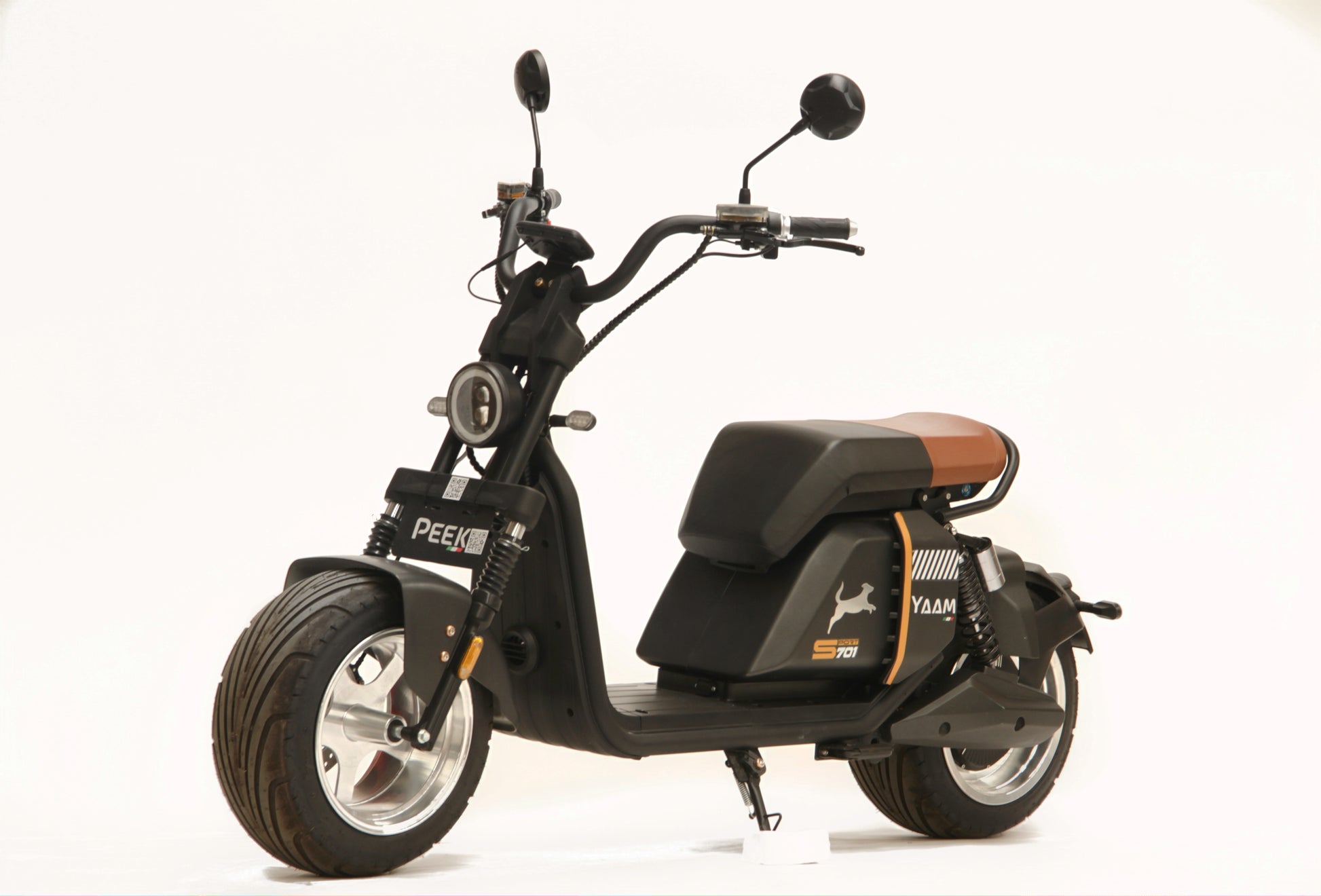 El YAAM 3000 es un vehículo eléctrico de alto rendimiento con motor de 3000W que supera los 80 km/h. Su batería de grafeno ofrece una autonomía de hasta 60 km y se recarga en 4 a 6 horas, con más de 500 ciclos de vida útil. Cuenta con frenos hidráulicos de disco, rines de aluminio y llantas dobles para mayor estabilidad. Su diseño elegante está disponible en azul, negro, naranja y rojo, e incluye luces LED de alta penetración, alarma y encendido equipado. Soporta hasta 200 kg y ofrece mantenimiento sencillo con garantía de un año o 10,000 km.